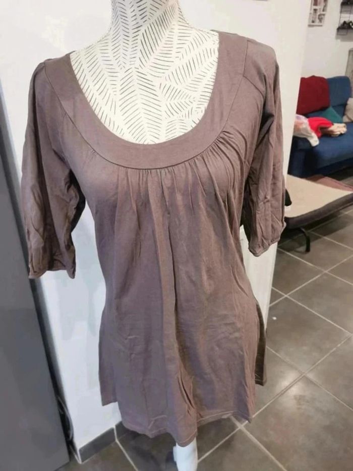 Jolie tunique couleur unie Manches avant le coude Taille 40-42, matière stretch