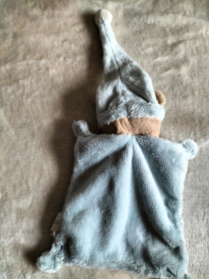 Doudou plat ourson bleu Taille environ 34 cm Du haut du bonnet jusqu'à en bas Marque nicotoy #amoula134doudou