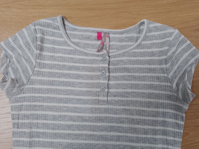Robe grise et blanche à rayures en très bon état