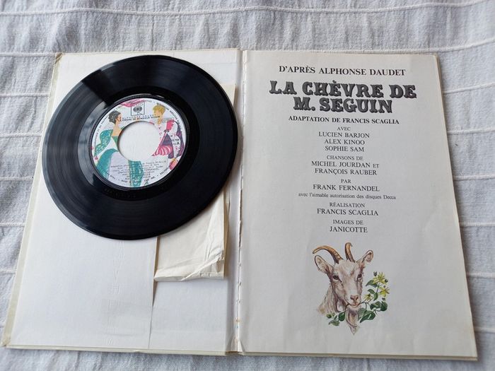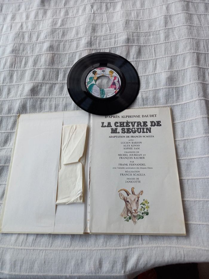 La chèvre de Mr Seguin Alphonse Daudet Livre vinyle 45 tours Édition Casterman de 1972 Collection L'âge d'or Vinyle vérifié très bon état Chansons par Frank Fernandel Livre un peu vieilli #linejaclivres