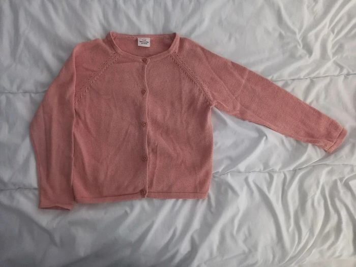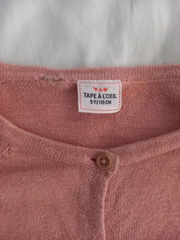 Gilet rose avec fil doré En très bon état, à été un peu décousu au col voir photo. Taille 5 ans Tape a l'œil #mathilde8825ans #gilettapealoeilfille