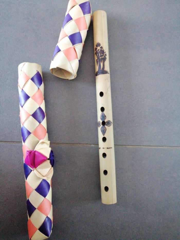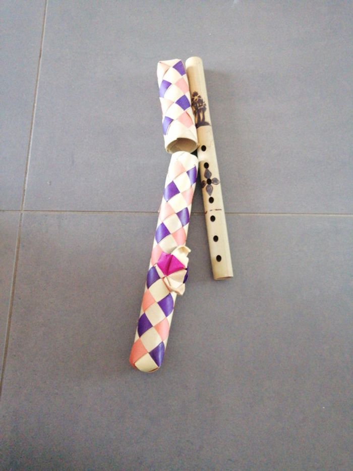 #audrey_94450_jouets Flûte artisanale et son panier de rangement qui vient de bali Le bois se casse un peu sur le devant mais reste collé