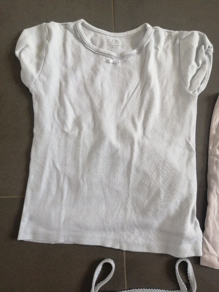 #audrey_94450_taille_8ans Porté beaucoup de fois Sur le dos des Tee-shirt le nom de ma fille apparaît car j'ai utilisé un tampon indiquant son nom 2 verbaudet et 1 cfk