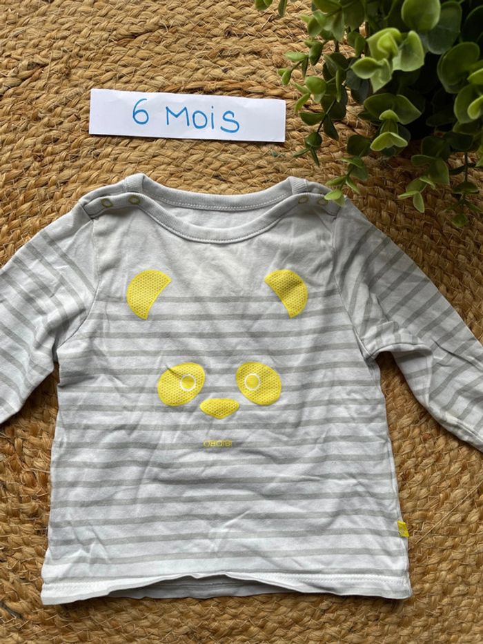 Tee-shirts manches longues gris blanc Motif tête panda jaune Réductions possibles en lot Autres vêtements dans la même taille : #mahunopi6mois ...