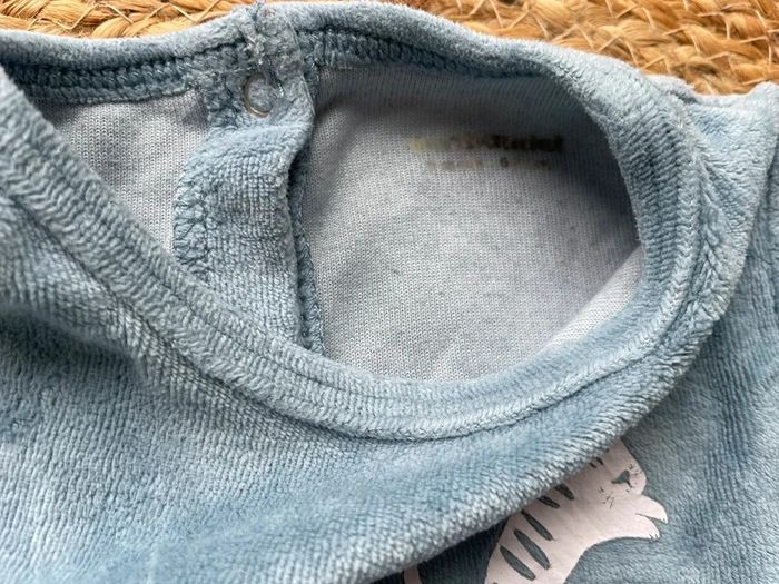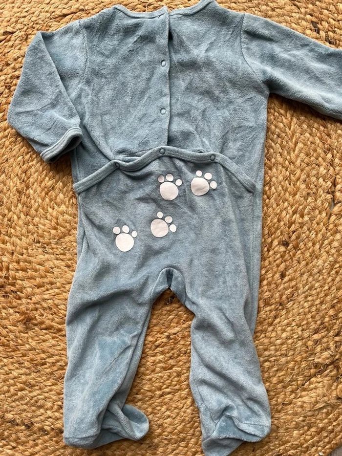 1 pièce. Pressions dans le dos Motif félin. Pattes sur les fesses. Bleu clair Réductions possibles en lot #mahunopi6mois