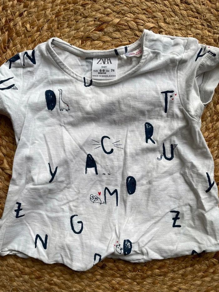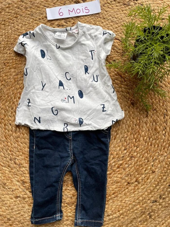 Ensemble avec un teeshirt motif lettres blanc et bleu marine Zara 6-9 mois et un jean Tape à l’œil. Réductions possibles en lot #mahunopi6mois