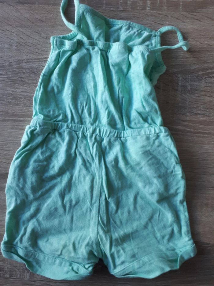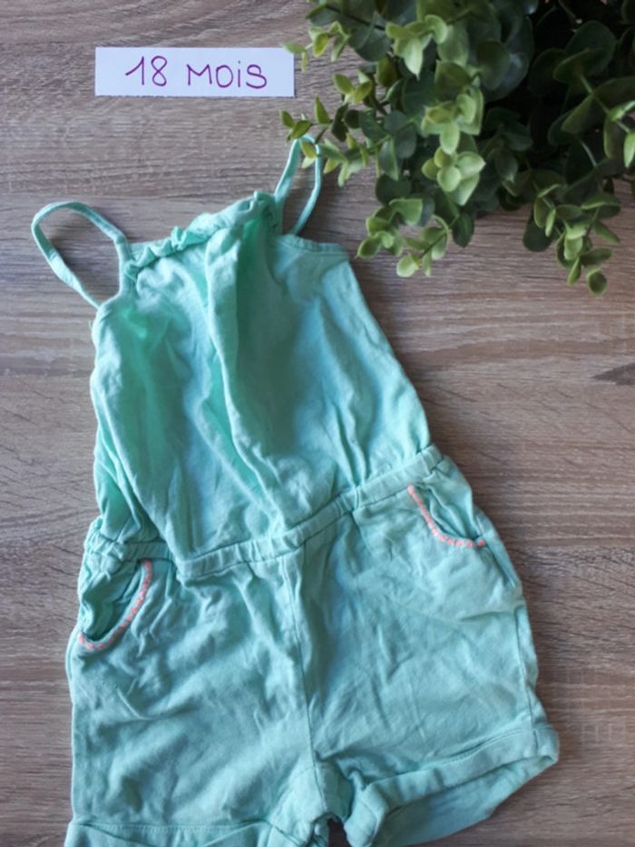 combi short. bretelles et short. pressions entre jambes. Vert menthe. détails rose corail au niveau des poches Réductions possibles en lot Autres vêtements de la même taille : #mahunopi18mois