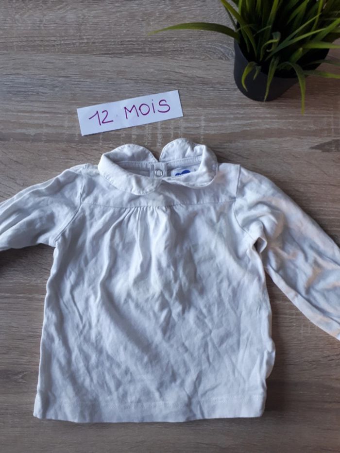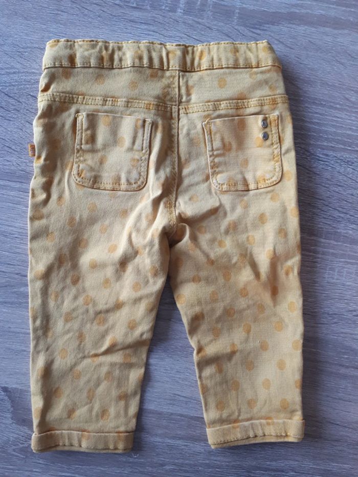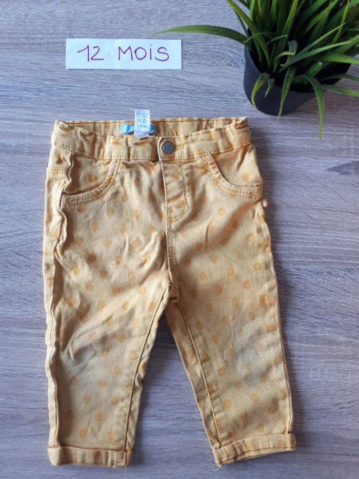 Ensemble composé d'un tee-shirt manches longues Mots d'enfants blanc uni avec petit col + un jean Obaïbi, jaune moutarde à pois oranges Réductions possibles en lot. Autres vêtements à la même taille : #mahunopi12mois