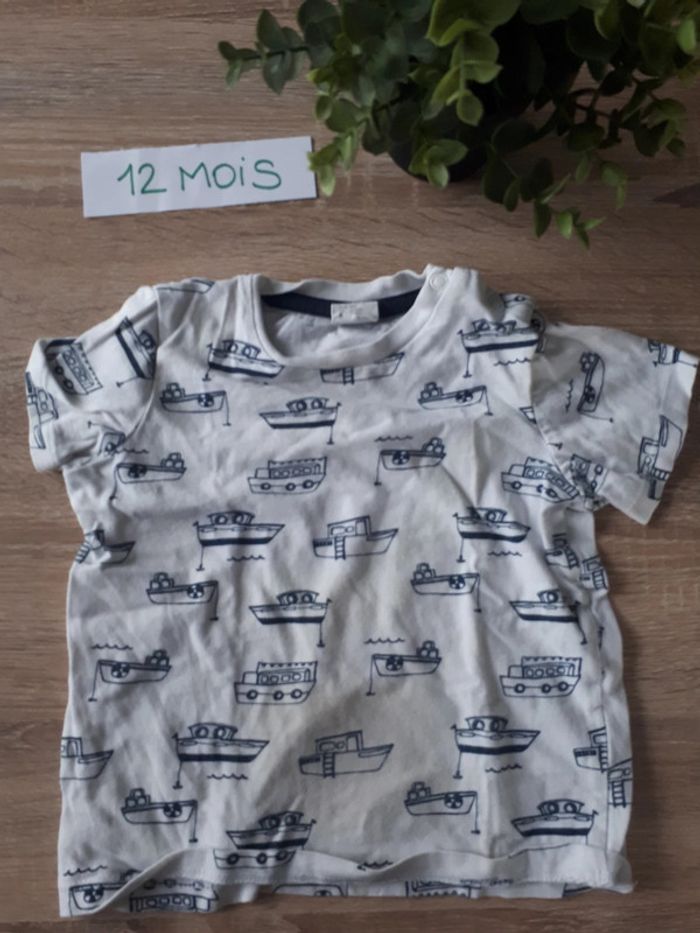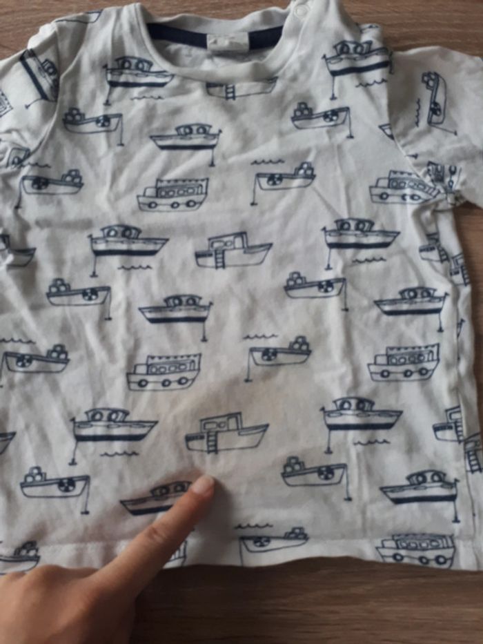 Tee shirt manches courtes. Motifs bateaux. Tâche discrète (cf : photo) Réductions possibles en lot Autres vêtements de la même taille : #mahunopi12mois