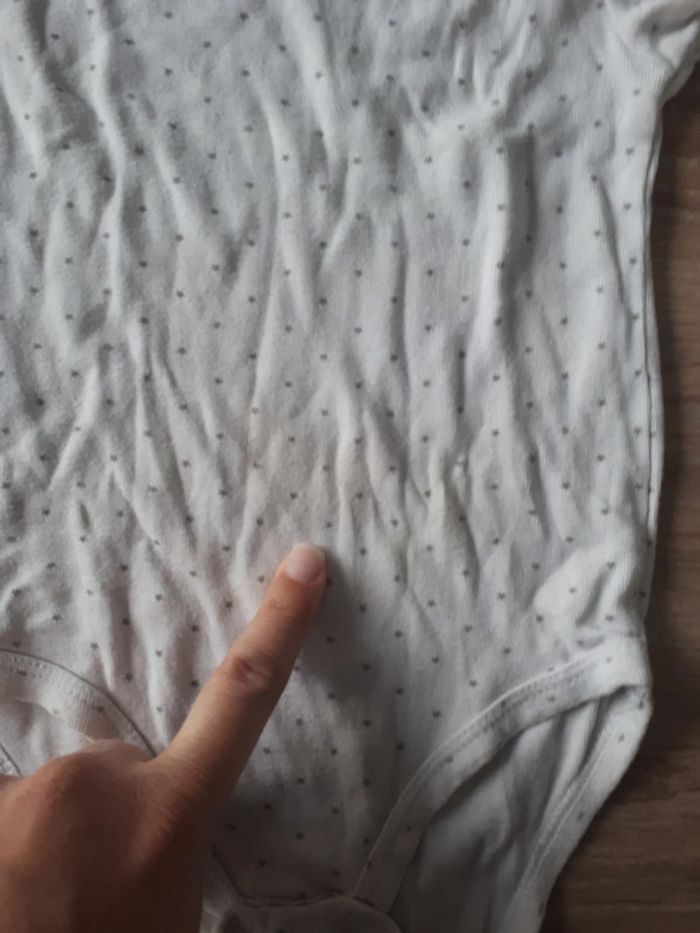 Manches courtes. Mixte. Motifs étoiles. Tâche discrète au niveau de la couche Réductions possibles en lot Autres vêtements de la même taille : #mahunopi12mois