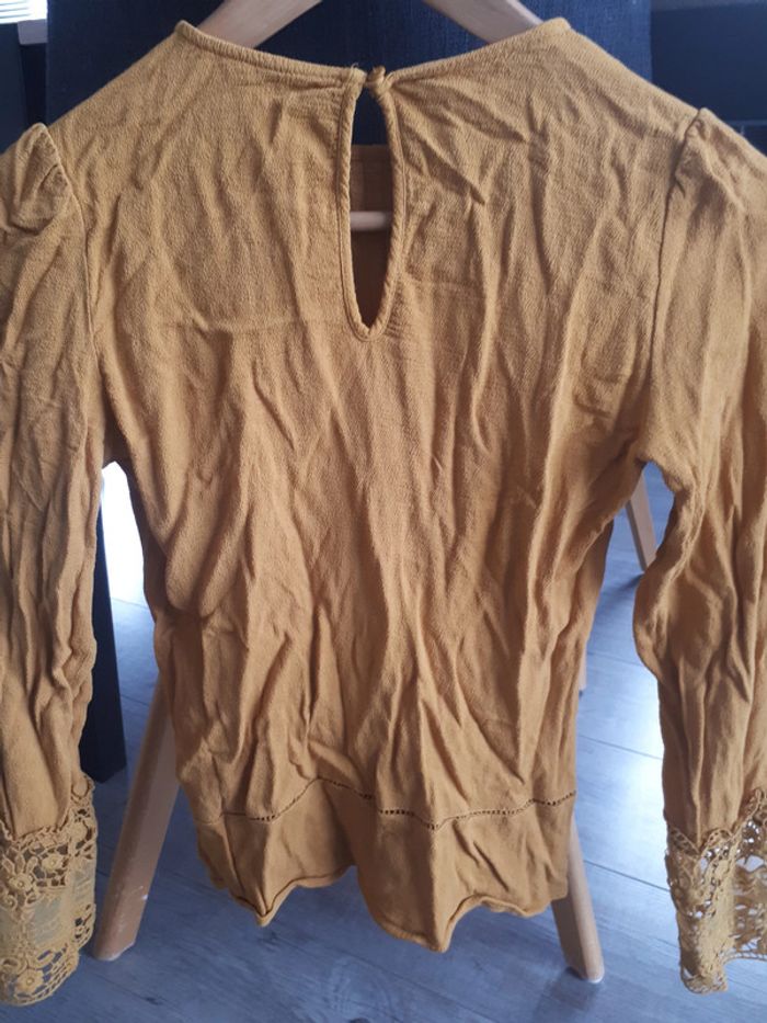 haut léger. jolis détails manches. Couleur moutarde. Excellent état bien que pas repassé ^^ Réductions possibles en lot #mahunopifemme #mahunopi36