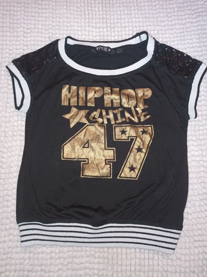 Tee shirt sequins sur les épaules. 8 ans de chez punkidz #tiitedrey_été_fille_8a