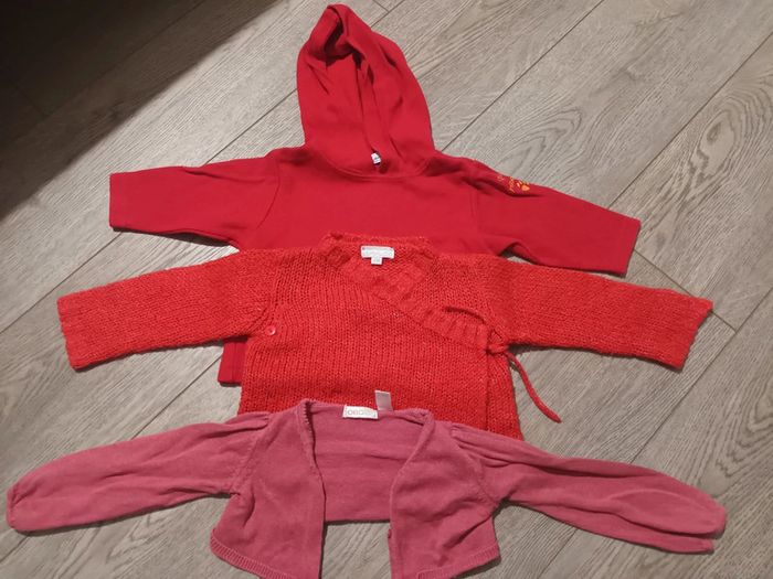 Lot de 3 gilets en 12 mois Tout en haut : capuche et signé les aristochats (tbe) Milieu : fermeture cache coeur a paillettes (tbe) En bas : petit cache coeur (bon etat) Lot dissociable #tiitedrey_fille_hiver_12m