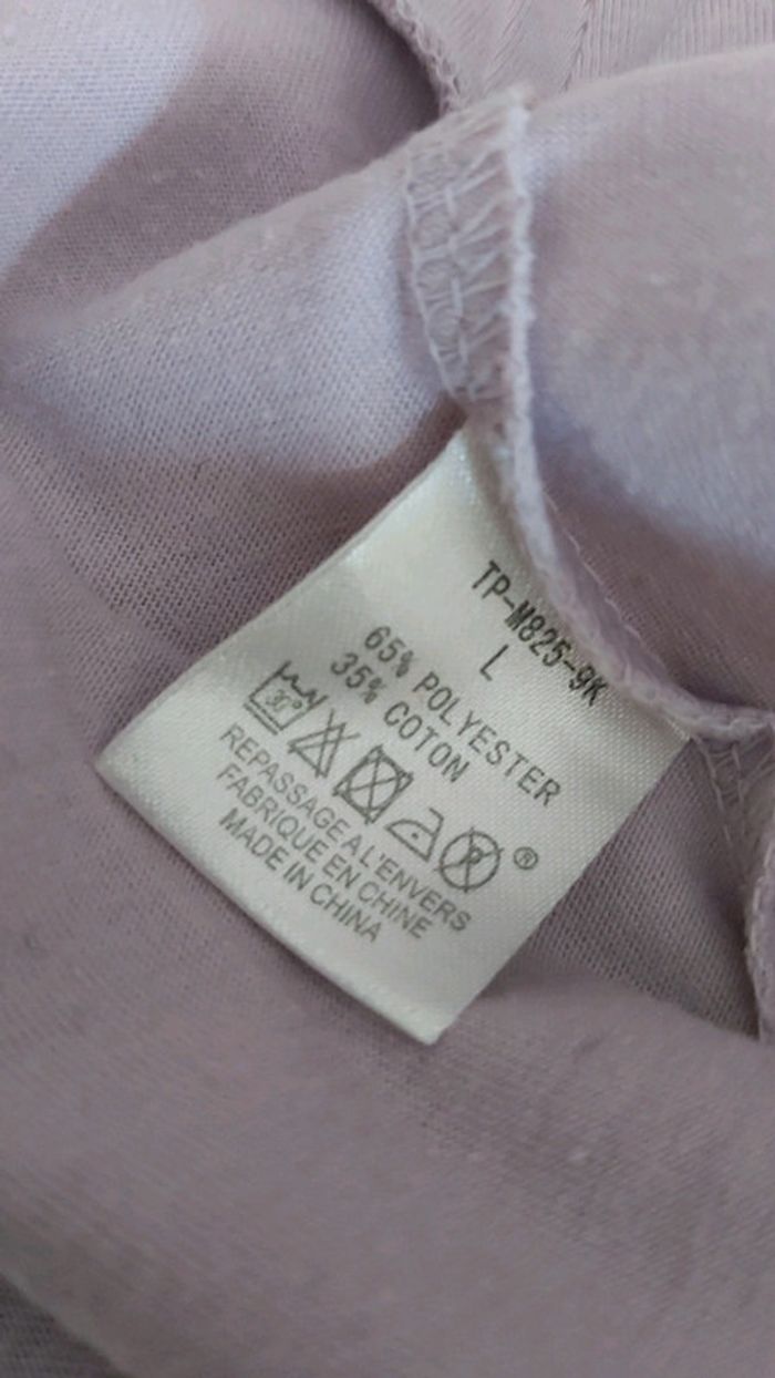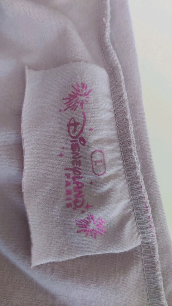 Acheté a Disneyland Paris Tee shirt violet clair avec des dessins cuties de marie avec un coeur en strass rose Taille L En très bon état