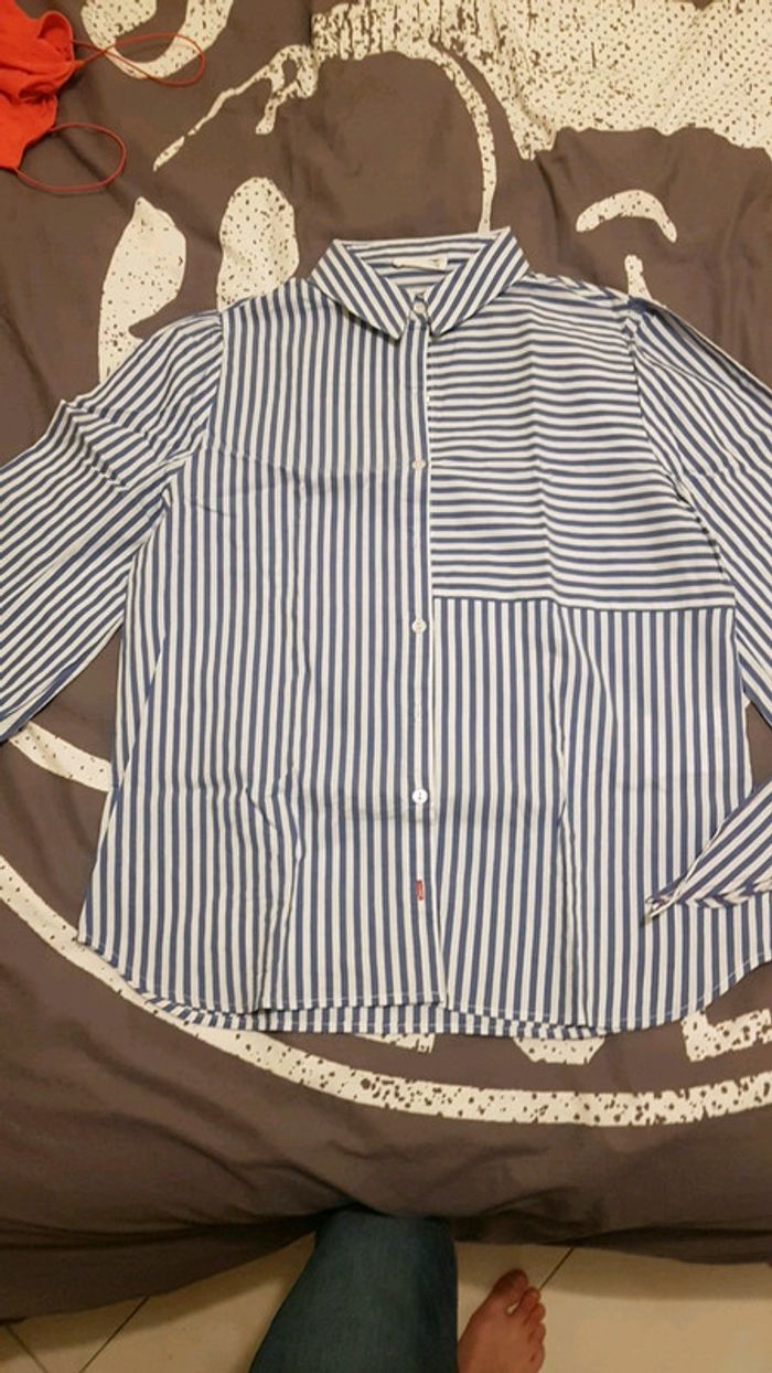Chemise rayures bleu et blanc avec noeud manches taille 36