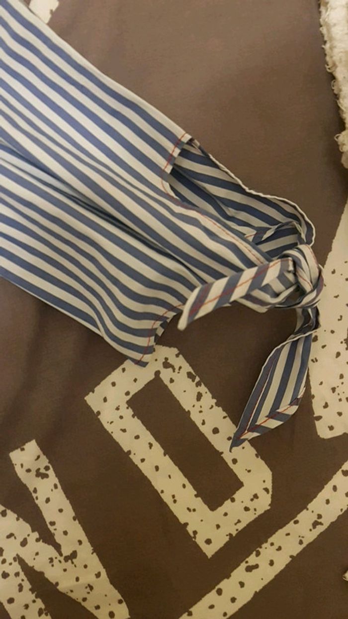 Chemise rayures bleu et blanc avec noeud manches - photo numéro 3