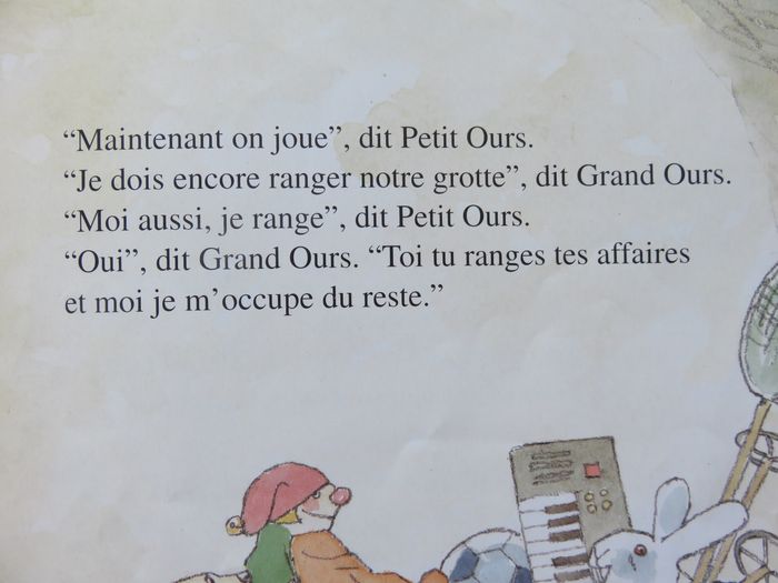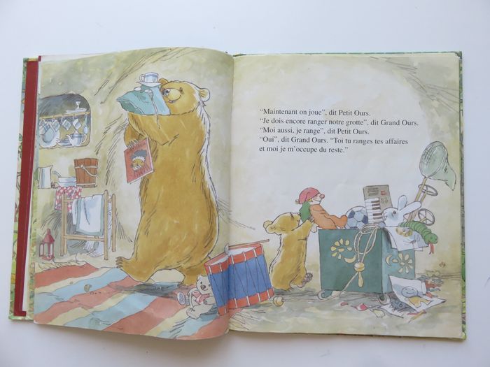 ⚠️ ÉTAT : Bon état . Livres issus d'un déstockage de médiathèque. Référence et code barre sur la couverture parfaitement plastifiée. (tampon et annotations de la biblio sur la page de titre). ⚠️ DÉTAILS : Album cartonnée ⚠️ RÉSUMÉ : Il était une fois deux ours, Grand Ours et Petit Ours. Grand Ours est le grand ours et Petit Ours est le petit ours. Petit Ours veut jouer mais Grand Ours n'a pas le temps. ❤️ MON AVIS : Relation harmonieuse entre un enfant qui ne pense qu'à jouer et un adulte qui a des taches à accomplir. Grand-Ours fait comprendre à Petit-Ours qu'il y a un temps pour chaque chose... et Petit-Ours accepte d'aider Grand-Ours puis de jouer tout seul avant que Grand-Ours n'accepte de partager ses jeux. C'est simple, très caractéristique de la vie d'un enfant pas encore scolarisé ⚠️ THÈMES ABORDÉS DANS LE LIVRE : dormir, coucher , nuit (dans la) , ours , peur du noir, cauchemar , tendresse, baiser, câlin 📦 LIVRAISON : Possibilité de remise en main propre sur Lyon