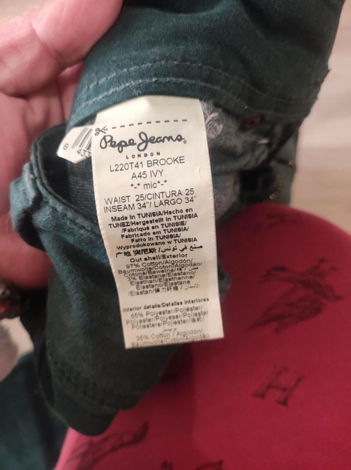 Pantalon slim pépé jean's taille w25 l 34 Vert bouteille très belle coupe trop petit N'hésitez pas à regarder mon dressing j'ai d'autres articles les réductions sont activées 😉