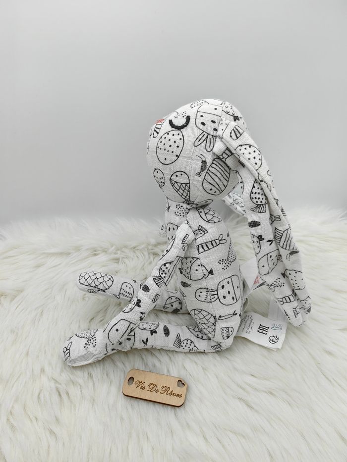 Doudou lapin blanc motif noir poissons Dpam - photo numéro 5