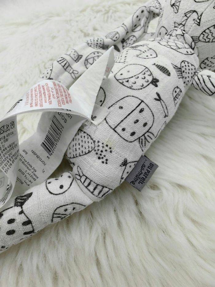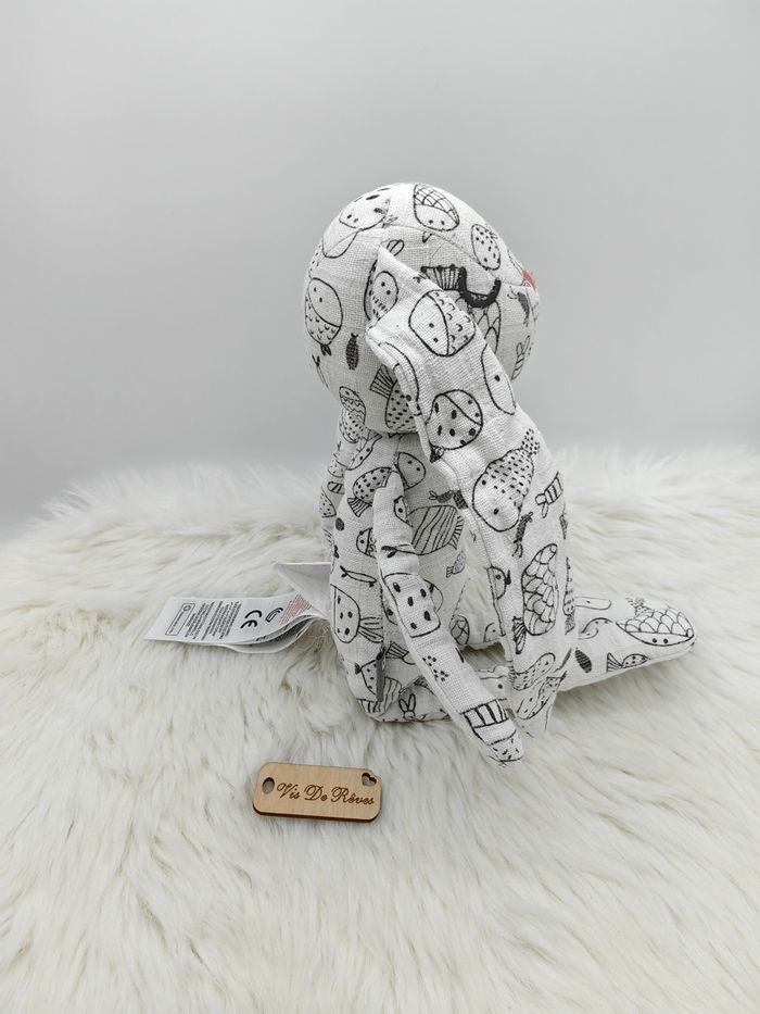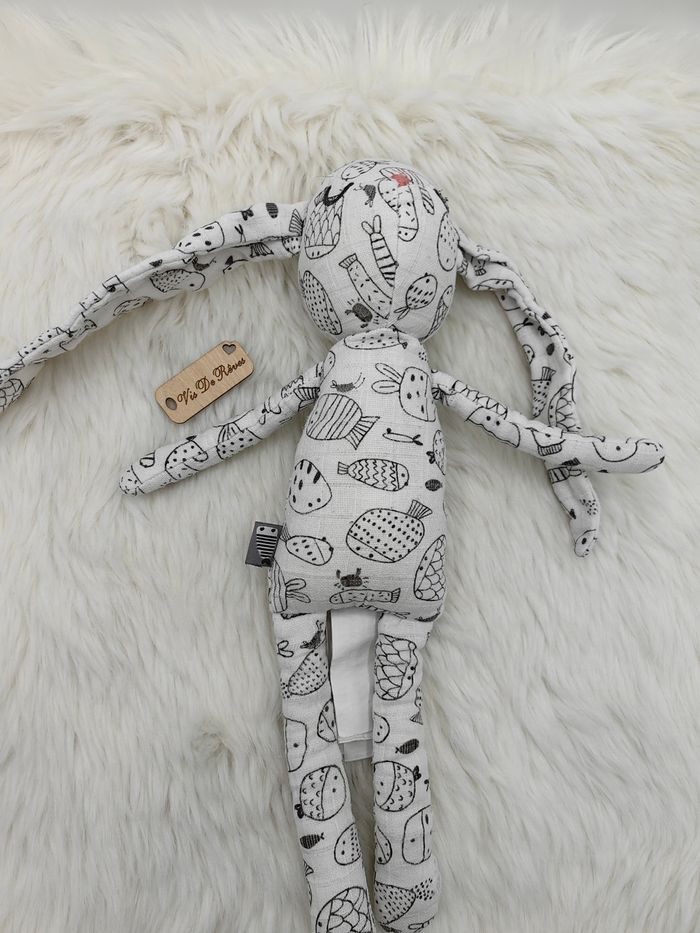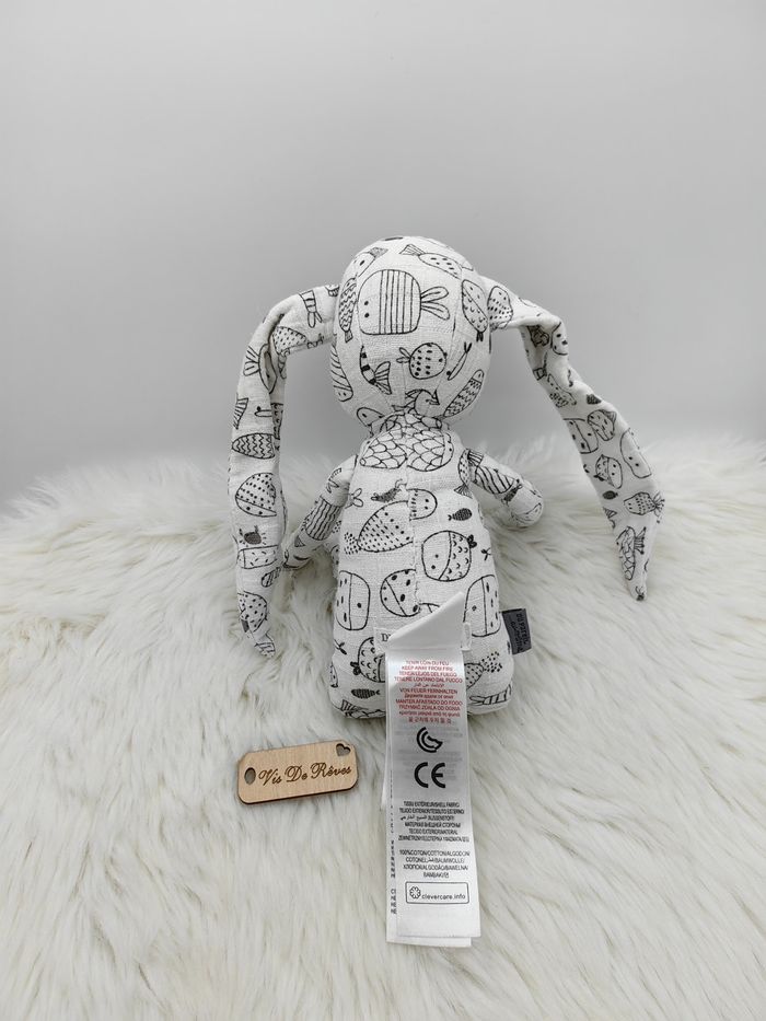 Doudou lapin blanc motif noir poissons Dpam - photo numéro 6