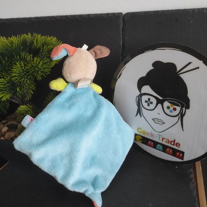 doudou sucre d'orge Lapin Bleu Orange Beige Marron Cocard #geektradedoudou