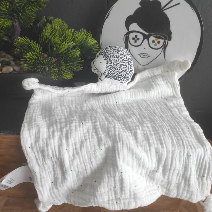 Doudou Hérisson lange coton blanc pois noirs Feuilles Vertes Vertbaudet #geektradedoudou - photo numéro 1