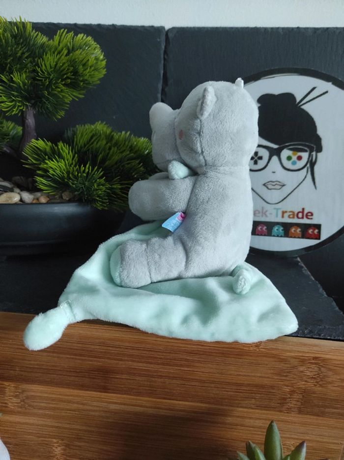 Doudou Knuffel Comforter  Mouchoir Rhinocéros Bleu Sucre D'orge #geektradedoudou - photo numéro 2