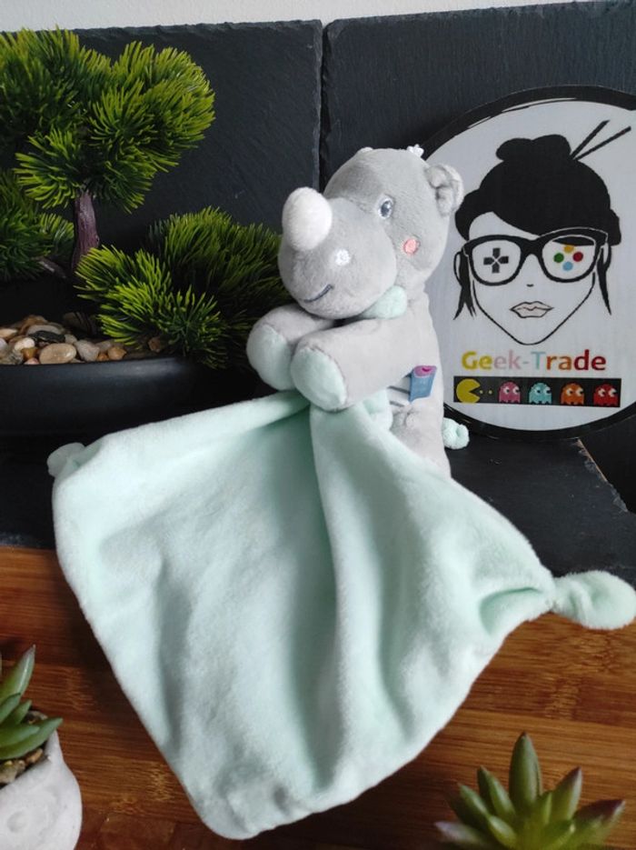Doudou Knuffel Comforter  Mouchoir Rhinocéros Bleu Sucre D'orge #geektradedoudou