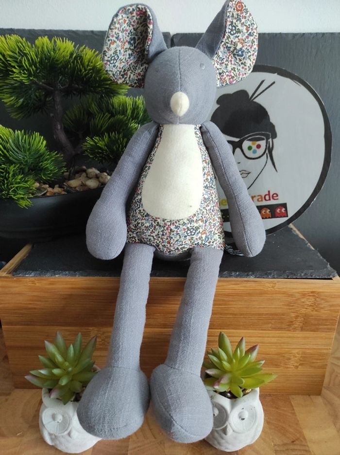 Doudou Knuffel Comforter Plush Souris Gris Fleur Pamplemousse #geektradedoudou - photo numéro 1