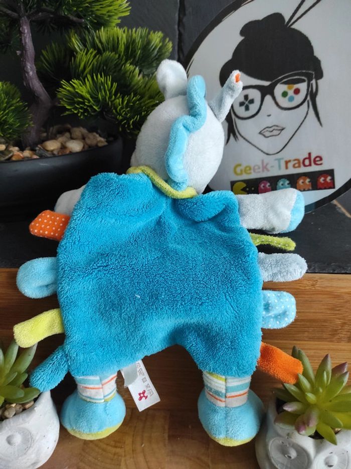 Doudou Knuffel Comforter Cheval Âne Bleu Oiseau Nicotoy #geektradedoudou - photo numéro 2