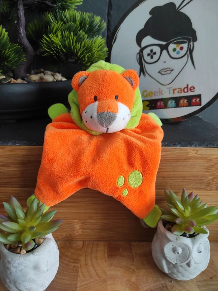 Doudou Knuffel Lion Orange Vert Fluo Système U Tout Petits#geektradedoudou - photo numéro 1