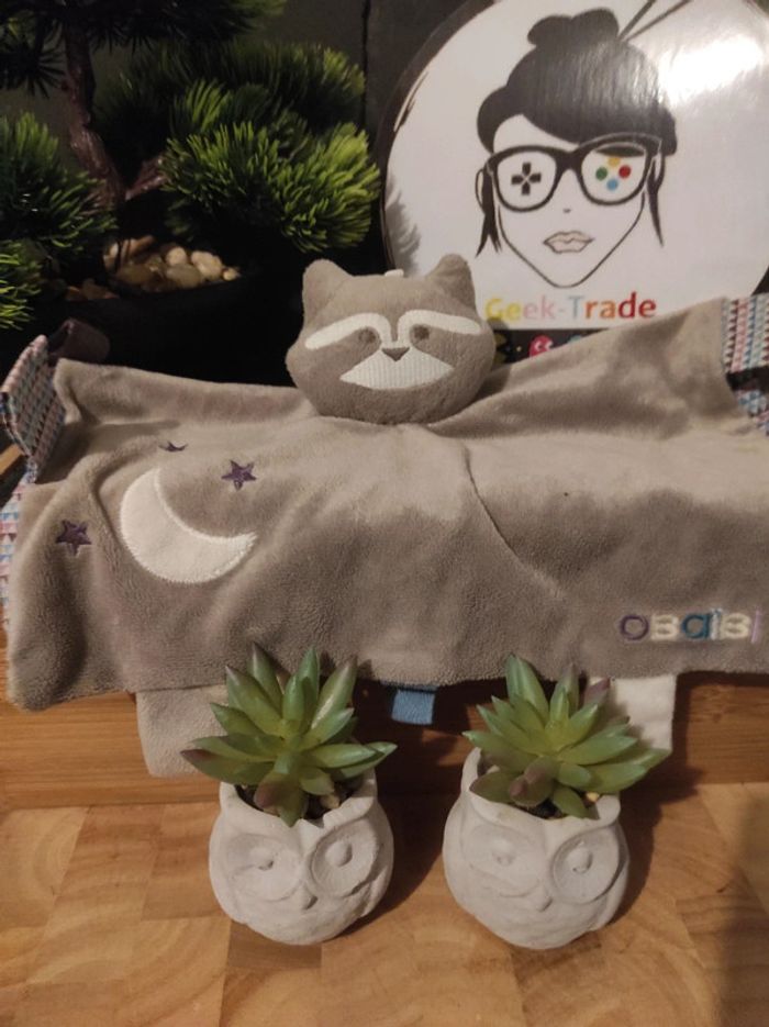 Doudou Knuffel Raton Laveur Gris Étoile Plat Lune Obaibi #geektradedoudou