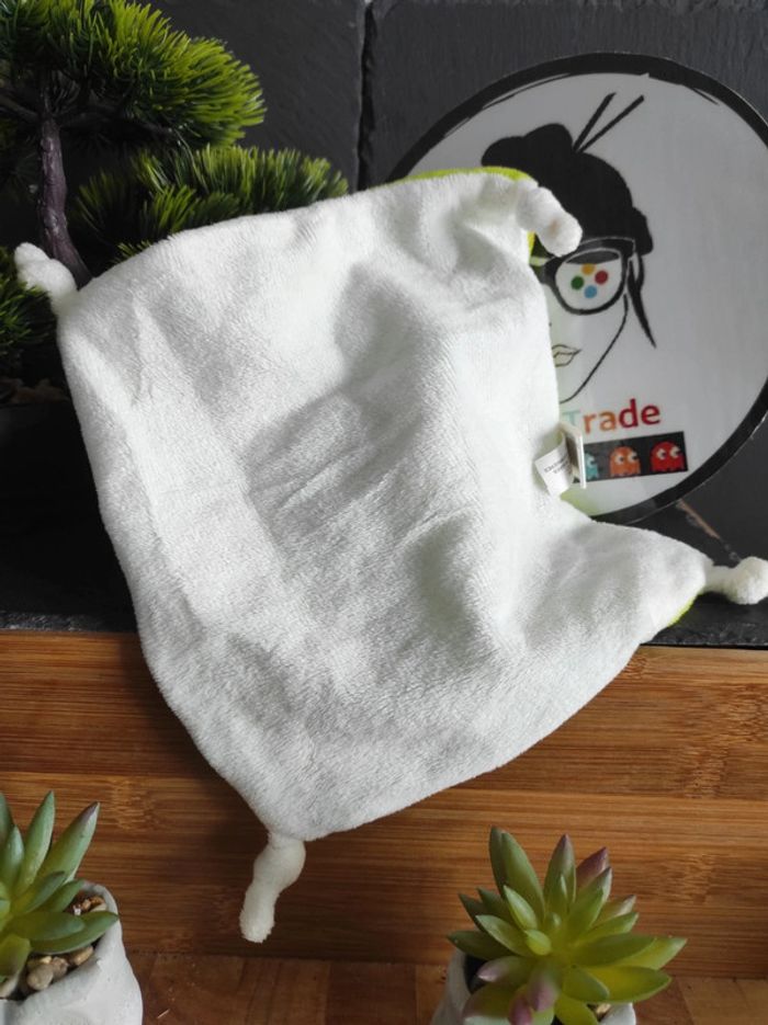Doudou LApin Blanc Vert Spirale Central'vet Plat Mouchoir #geektradedoudou - photo numéro 2