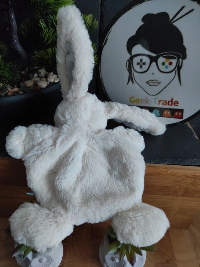 Doudou Lapin Blanc Bleu Flocon Pantin Baby Nat'  Plat Mouchoir #geektradedoudou