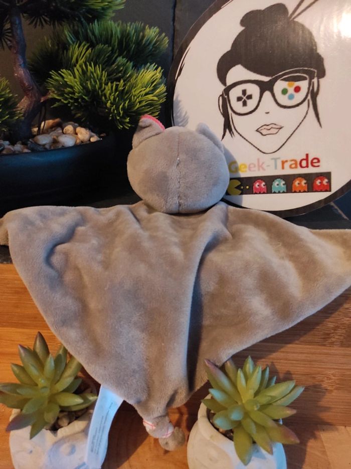 Doudou Chat Gris Rose Carreaux Kilidou Plat Mouchoir #geektradedoudou