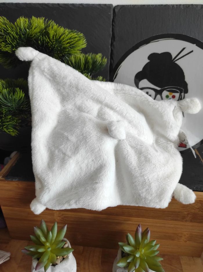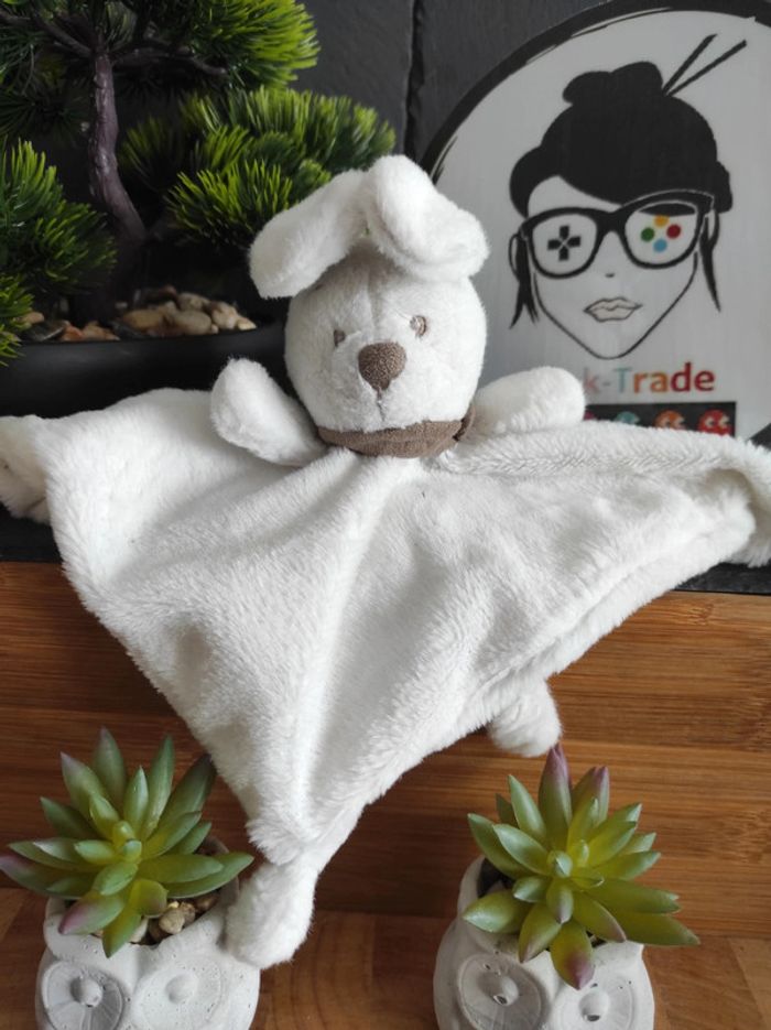 Doudou Lapin Blanc Marron Nicotoy Plat mouchoir #geektradedoudou