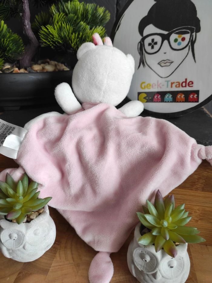 Doudou Ours Blanc Indien Mots D'enfants Rose Plat mouchoir #geektradedoudou - photo numéro 2