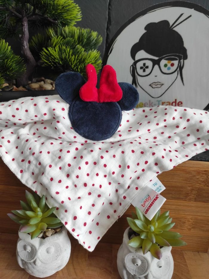 Doudou Minnie Disney Pois Baby Nat Orchestra plat mouchoir #geektradedoudou