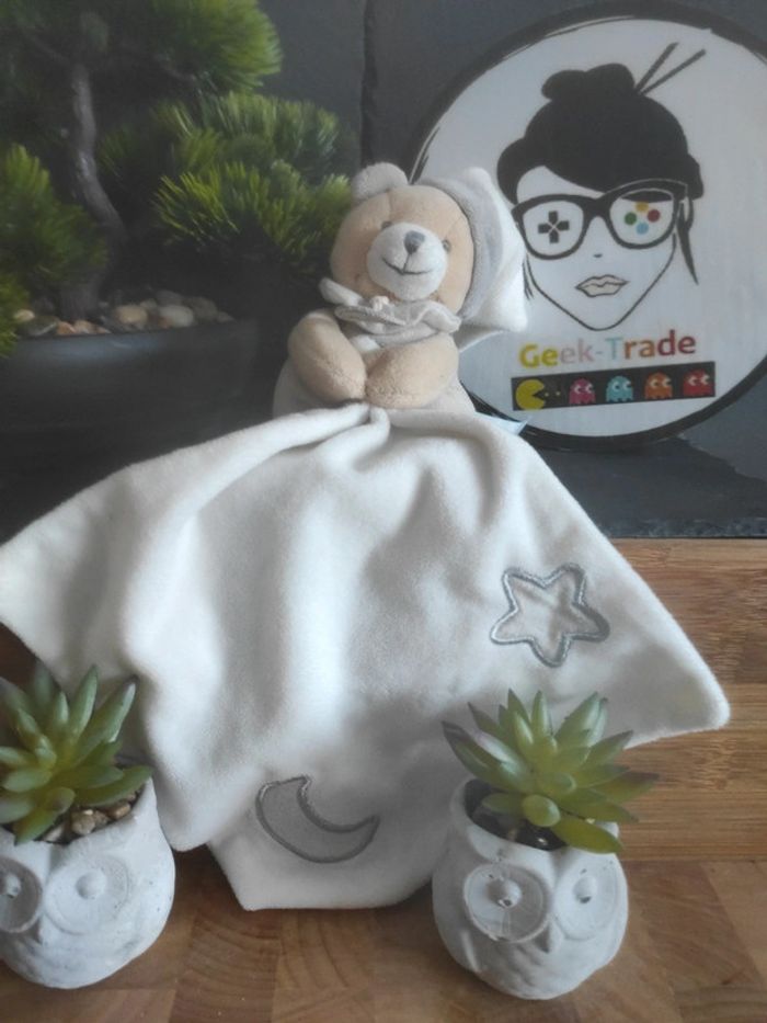 Ours Gris Les Luminescents Baby Nat' BN0137 plat mouchoir #geektradedoudou Ours gris Tenue et bonnet de nuit blanc gris Mouchoir blanc broderie étoile lune Luminescent brille dans le noir Doudou pantin Légère trace à laver .doudou a laver Afin de ne pas abîmer les doudous et de laisser le choix dans l'utilisation de la lessive les peluches ne sont pas lavées avant envoi Envoi sous 24/48 heures (pas d'envoi du samedi au lundi cependant) Description complément : Petit nettoyage à prévoir Vous achetez ce que vous voyez les photos font entièrement partie de la description Transport : Les frais de transport comprennent les frais du transporteur ainsi que l'emballage pour protéger au mieux votre achat. Chaque achat est envoyé en format colis avec numéro de suivi Le poids du colis est de 500g finit (je ne peux pas faire moins) il peut donc y avoir plusieurs objets dans le carton si vous le souhaitez (contactez moi afinde grouper les frais de port) Référencement : #geektradedoudou #peluche #plush  #doudou #enfant #bebe