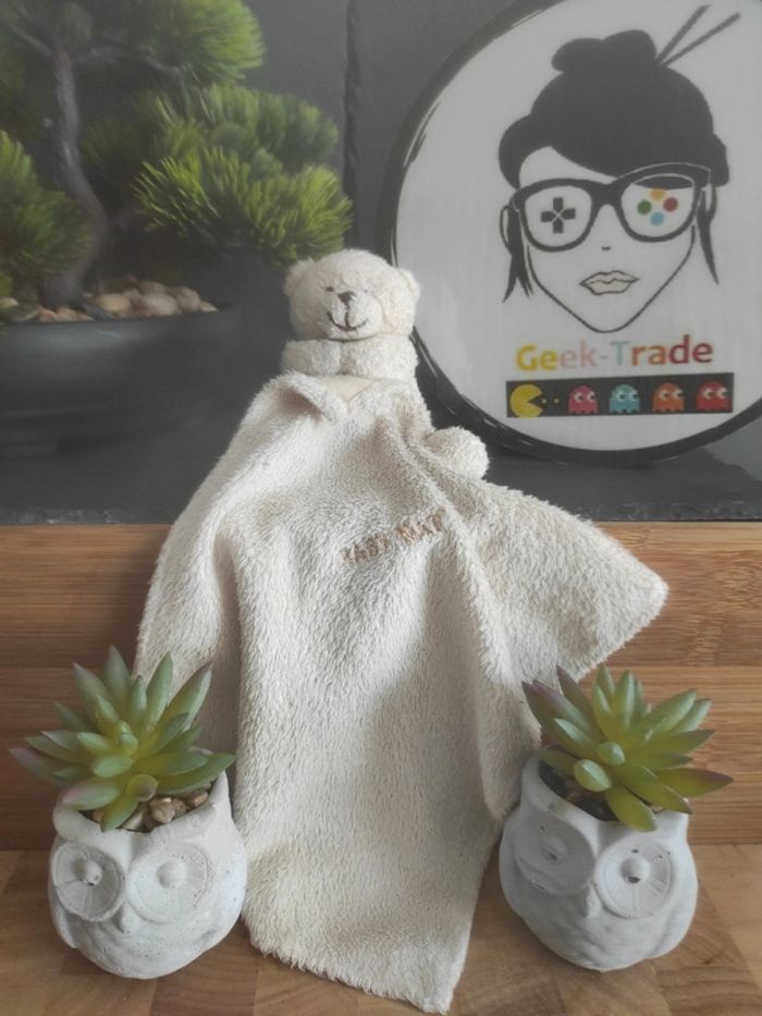 Ours Beige Blanc Baby Nat' Bonbon plat mouchoir #geektradedoudou