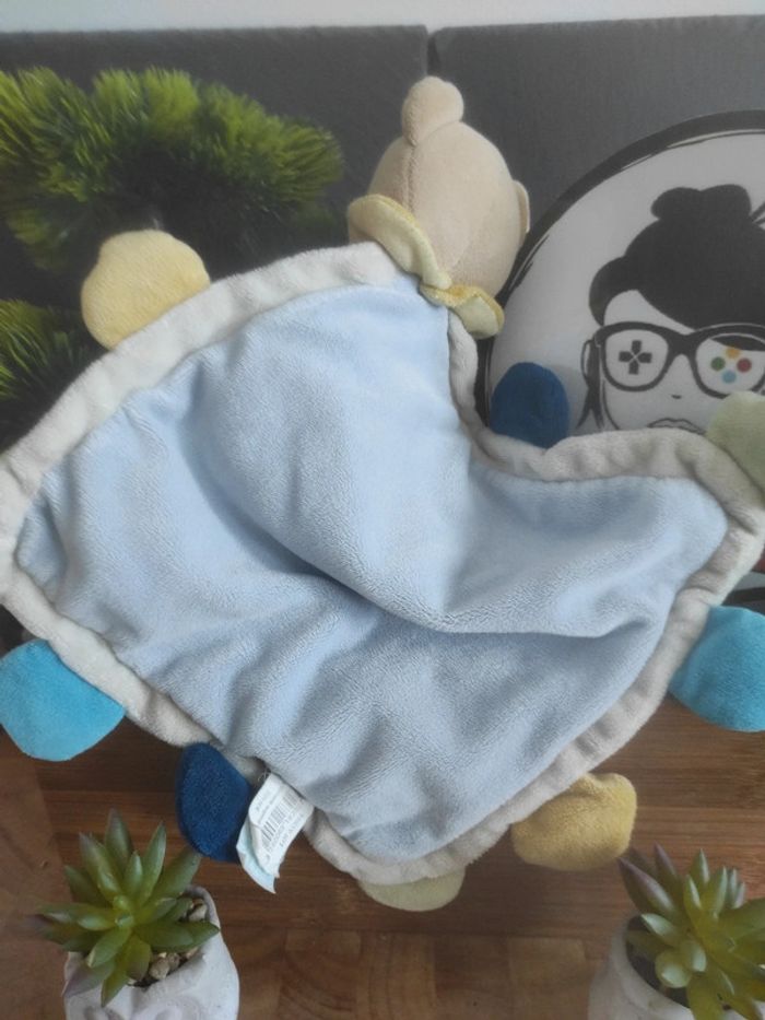 Ours Bear Marron Bleu Baby Nat' Super doudou plat mouchoir  BN302 #geektradedoudou - photo numéro 4