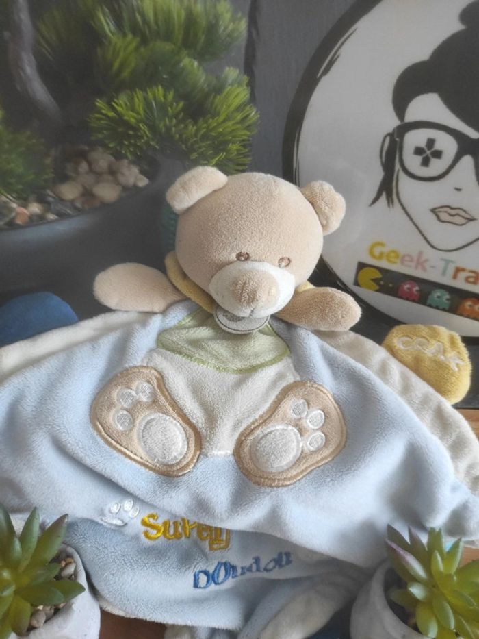 Ours Bear Marron Bleu Baby Nat' Super doudou plat mouchoir  BN302 #geektradedoudou - photo numéro 1