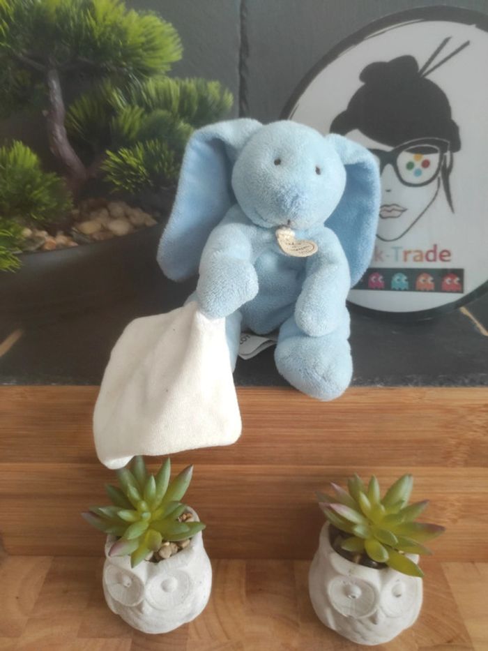 Doudou Et Compagnie Lapin Bleu Pantin Plush Plat Mouchoir #geektradedoudou