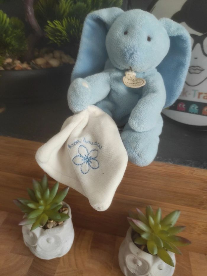 Doudou Et Compagnie Lapin Bleu Pantin Plush Plat Mouchoir #geektradedoudou Lapin bleu qui tient un mouchoir blanc Broderie bleu mon doudou et fleur Bon etat Afin de ne pas abîmer les doudous et de laisser le choix dans l'utilisation de la lessive les peluches ne sont pas lavées avant envoi Description complément : Petit nettoyage à prévoir Vous achetez ce que vous voyez les photos font entièrement partie de la description Transport : Les frais de transport comprennent les frais du transporteur ainsi que l'emballage pour protéger au mieux votre achat. Chaque achat est envoyé en format colis avec numéro de suivi Le poids du colis est de 500g finit (je ne peux pas faire moins) il peut donc y avoir plusieurs objets dans le carton si vous le souhaitez (contactez moi afinde grouper les frais de port) Référencement : #geektradedoudou #peluche #plush  #doudou #enfant #bebe
