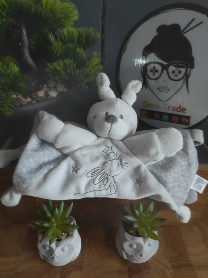 Doudou Knuffel Lapin Gris Étoile Simba Toys Nicotoys Plat #geektradedoudou Doudou plat mouchoir Lapin blanc noeuds aux oreilles Mouchoir blanc et gris Broderie lapin qui regarde les étoiles Bon etat Afin de ne pas abîmer les doudous et de laisser le choix dans l'utilisation de la lessive les peluches ne sont pas lavées avant envoi Description complément : Petit nettoyage à prévoir Vous achetez ce que vous voyez les photos font entièrement partie de la description Transport : Les frais de transport comprennent les frais du transporteur ainsi que l'emballage pour protéger au mieux votre achat. Chaque achat est envoyé en format colis avec numéro de suivi Le poids du colis est de 500g finit (je ne peux pas faire moins) il peut donc y avoir plusieurs objets dans le carton si vous le souhaitez (contactez moi afinde grouper les frais de port) Référencement : #geektradedoudou #peluche #plush  #doudou #enfant #bebe
