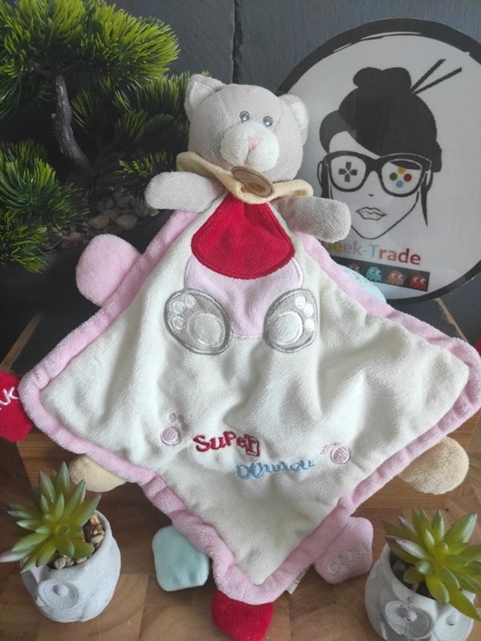 Doudou Chat Super Doudou Baby Nat' Gris Rose plat mouchoir #geektradedoudou Doudou chat gris Grand doudou plat Super doudou avec broderie pattes Rose gris blanc rouge Bon etat Afin de ne pas abîmer les doudous et de laisser le choix dans l'utilisation de la lessive les peluches ne sont pas lavées avant envoi Description complément : Petit nettoyage à prévoir Vous achetez ce que vous voyez les photos font entièrement partie de la description Transport : Les frais de transport comprennent les frais du transporteur ainsi que l'emballage pour protéger au mieux votre achat. Chaque achat est envoyé en format colis avec numéro de suivi Le poids du colis est de 500g finit (je ne peux pas faire moins) il peut donc y avoir plusieurs objets dans le carton si vous le souhaitez (contactez moi afinde grouper les frais de port) Référencement : #geektradedoudou #peluche #plush  #doudou #enfant #bebe