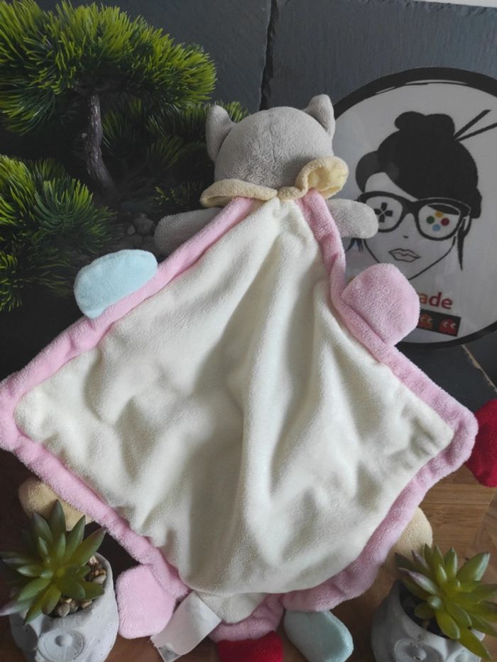 Doudou Chat Super Doudou Baby Nat' Gris Rose  plat mouchoir  #geektradedoudou - photo numéro 3