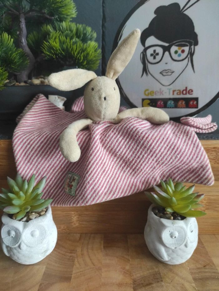 Lapin La Grande Famille Moulin Roty plat mouchoir #geektradedoudou Lapin marron Logo la grande famille Mouchoir à rayure beige et rose et verso beige Attache tétine Bon etat Afin de ne pas abîmer les doudous et de laisser le choix dans l'utilisation de la lessive les peluches ne sont pas lavées avant envoi Description complément : Petit nettoyage à prévoir Vous achetez ce que vous voyez les photos font entièrement partie de la description Transport : Les frais de transport comprennent les frais du transporteur ainsi que l'emballage pour protéger au mieux votre achat. Chaque achat est envoyé en format colis avec numéro de suivi Le poids du colis est de 500g finit (je ne peux pas faire moins) il peut donc y avoir plusieurs objets dans le carton si vous le souhaitez (contactez moi afinde grouper les frais de port) Référencement : #geektradedoudou #peluche #plush  #doudou #enfant #bebe