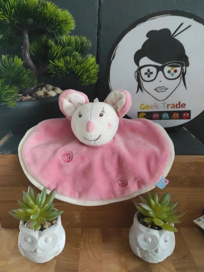 Doudou Souris Rose Rond Sucre D'orge plat mouchoir  #geektradedoudou - photo numéro 1