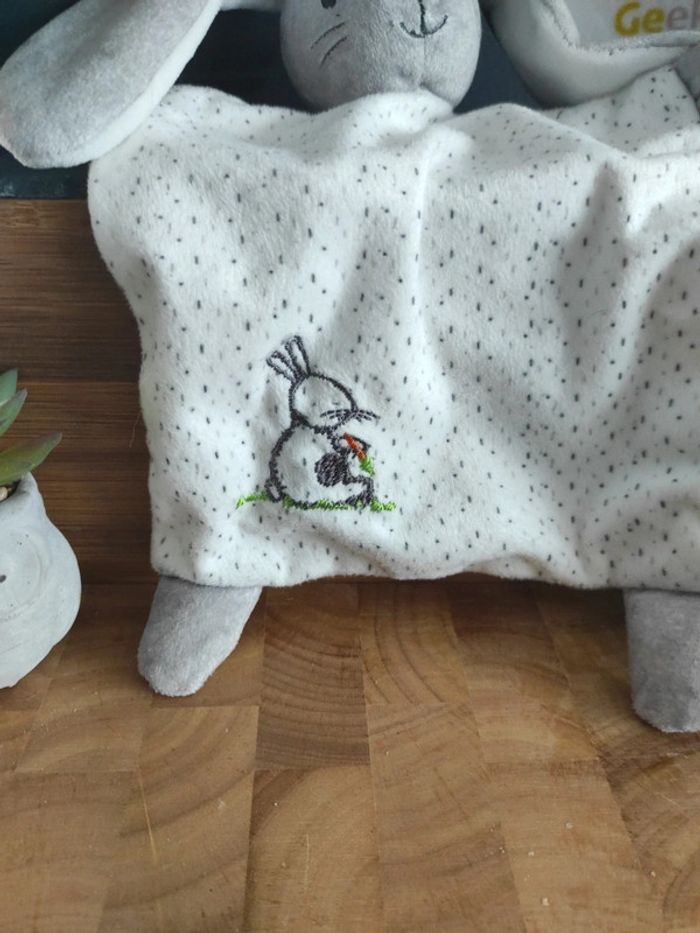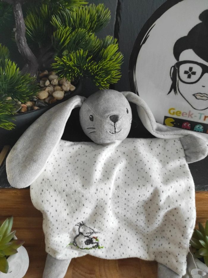 Lapin Blanc Et Gris Tacheté Mots D'enfants plat mouchoir #geektradedoudou Doudou lapin gris corps blanc tacheté Une broderie lapin qui mange une carotte Étiquette coupée Très bel état Bon etat Afin de ne pas abîmer les doudous et de laisser le choix dans l'utilisation de la lessive les peluches ne sont pas lavées avant envoi Description complément : Petit nettoyage à prévoir Vous achetez ce que vous voyez les photos font entièrement partie de la description Transport : Les frais de transport comprennent les frais du transporteur ainsi que l'emballage pour protéger au mieux votre achat. Chaque achat est envoyé en format colis avec numéro de suivi Le poids du colis est de 500g finit (je ne peux pas faire moins) il peut donc y avoir plusieurs objets dans le carton si vous le souhaitez (contactez moi afinde grouper les frais de port) Référencement : #geektradedoudou #peluche #plush  #doudou #enfant #bebe